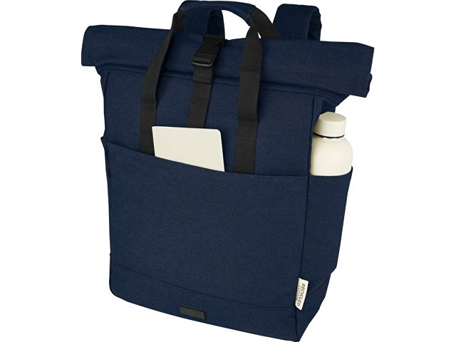 Изготовленный из высокопрочных экологичных материалов, брезента и подкладки из переработанного ПЭТ, соответствующих стандарту GRS, рюкзак Joey со сворачивающимся верхом имеет специальный чехол для планшета и отделение с подкладкой для ноутбука диагональю 15 дюймов. Рюкзак также имеет 2 боковых кармана для воды, один большой передний карман на молнии и сворачивающуюся верхнюю часть на молнии для максимальной вместимости и безопасности. Две усиленные вязанные ручки обеспечивают удобство и простоту ношения в качестве деловой сумки-тоут. Декоративная металлическая пластина может придать логотипу сияние благодаря утонченному матовому покрытию. Термотрансфер (1 цвет (цветные изделия)) на данный товар осуществляется бесплатно. Оплачивается только настройка оборудования в размере 10000 рублей на весь тираж.