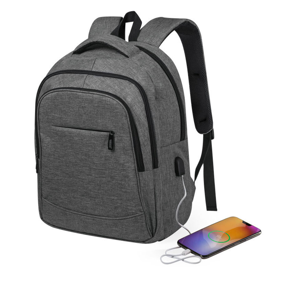 · Два дополнительных отдела для хранения на молнии · Наружный удобный карман на молнии · Внутри укрепленный отдел для ноутбука с защитной тесьмой на липучке · USB разъем для подзарядки вашего устройства (внутри рюкзака расположен кабель для соединения с power bank) · Боковой карман сетка · Эргономичные лямки и ручка рюкзака · Лямки прошиты дополнительными стропами в быстро изнашиваемых местах, которые можно отрегулировать по длине и зафиксировать пластиковыми крепежами · Упаковка: прозрачный пакет