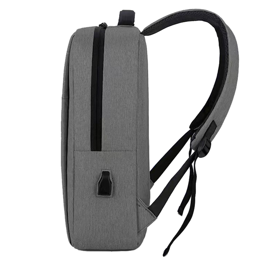 Одно большое отделение закрывается молнией со скрытым звеном. Внутри большой уплотненный карман для ноутбука 15,6 дюймов с клапаном на велькро и карман-органайзер для мелких аксессуаров. На передней стенке два больших скрытых кармана на молнии, боковой открытый карман и USB-разъем с проводом для подключения внешнего аккумулятора. Уплотнённая короткая ручка для дополнительного комфорта рук. Уплотнённые плечевые ремни регулируются по длине.
