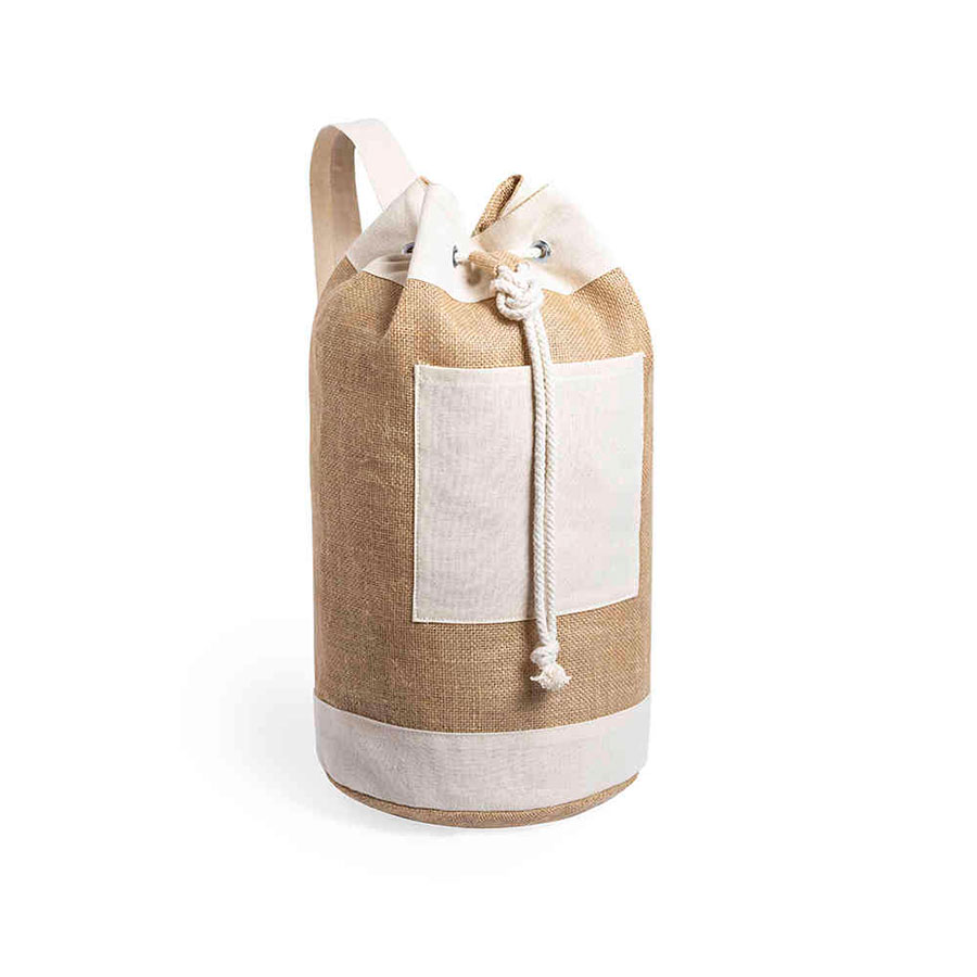 Универсальный двухцветный рюкзак. Модель из джута, детали из хлопка. Регулируемый ремешок и внутренний карман. Основное отделение с усиленными металлическими проушинами и передним карманом для удобной печати.