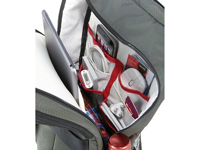 Этот очень легкий рюкзак значительно облегчает и улучшает качество путешествий. Система разумного хранения вещей внутри рюкзака является инновацией в современных рюкзаках. Рюкзак изготовлен из легкого нейлона с водонепроницаемым покрытием. Рюкзак обладает отличным функционалом: карман для ноутбука, планшета, органайзер, вмещающий ручки, провода и карточки, сетчатый карман для бутылки сбоку. Удобные мягкие и долговечные лямки. на спинке предусмотрен ремень для крепления на ручку чемодана. Светоотражающие элементы и логотип обеспечивают дополнительную безопасность в темное время суток.