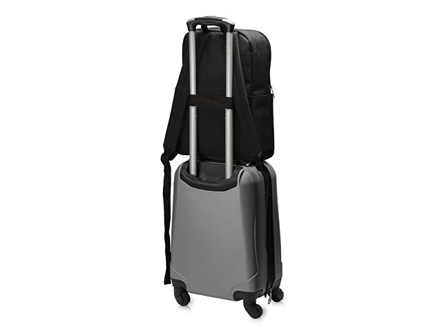 Удобный и практичный рюкзак с отделением для ноутбука 15.6'', двумя наружными карманами сбоку и одним впереди, креплением на чемодан. Спереди снаружи расположена светоотражающая лента, гарантирующая дополнительную безопасность в темное время суток. Лямки регулируются по длине. Термотрансфер (1 цвет (цветные изделия)) на данный товар осуществляется бесплатно. Оплачивается только настройка оборудования в размере 10000 рублей на весь тираж.