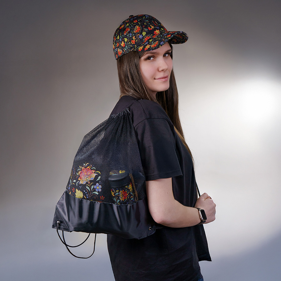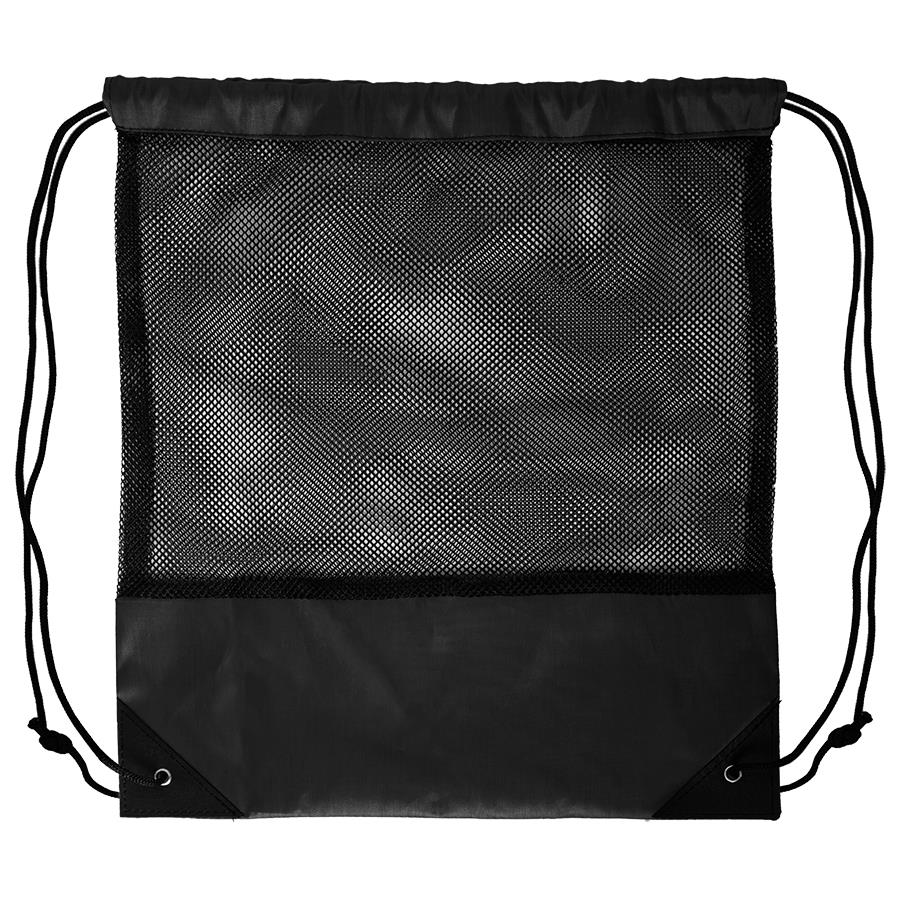 Рюкзак-мешок Mesh из полиэстера 210D c сеткой.C чёрными уголками и шнурами.Легко и просто затягивается по верхней части чёрными шнурами.