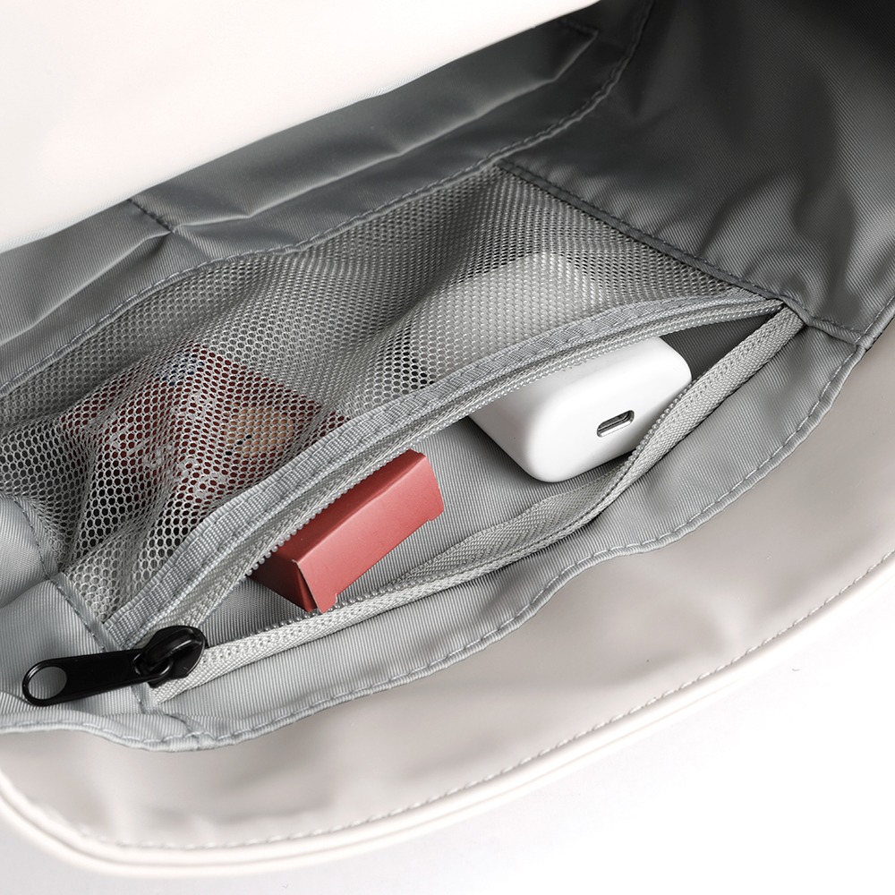 Внутри уплотнённый карман для ноутбука 14 дюймов, карман-органайзер для аксессуаров и ЭКСКЛЮЗИВНАЯ ОПЦИЯ - специальный карман-сетка ДЛЯ АРОМАСАШЕ на молнии.