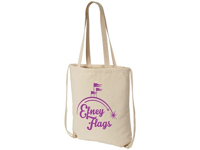 Многофункциональный хлопковый мешок с лямками и длинными ручками, который можно носить в качестве сумки для покупок или рюкзака. Большой основное отделение закрывается затяжкой- шнурком. Трафаретная печать (1 цвет (цветные изделия)) на данный товар осуществляется бесплатно. Оплачивается только настройка оборудования в размере 10000 рублей на весь тираж.