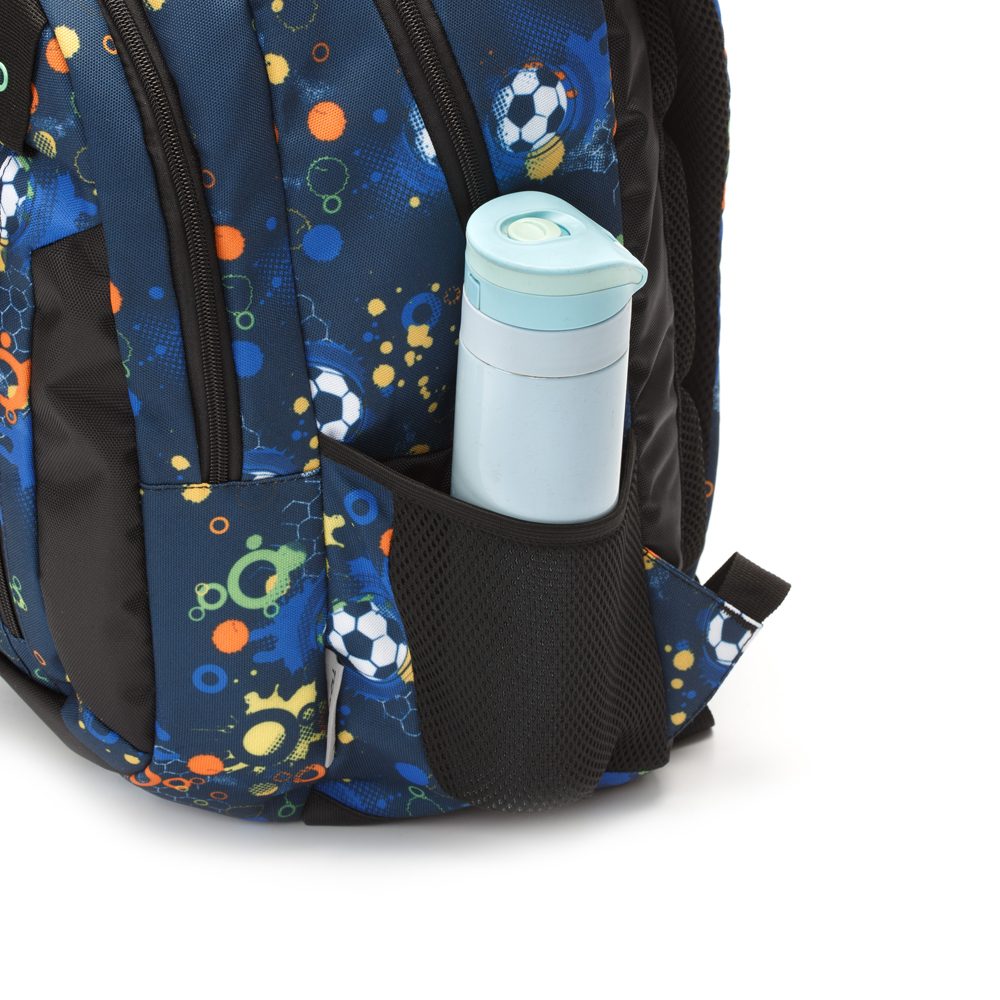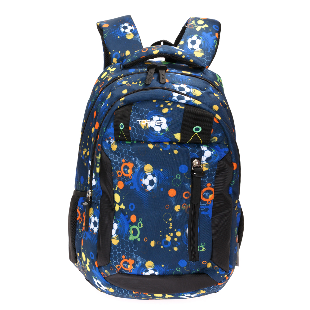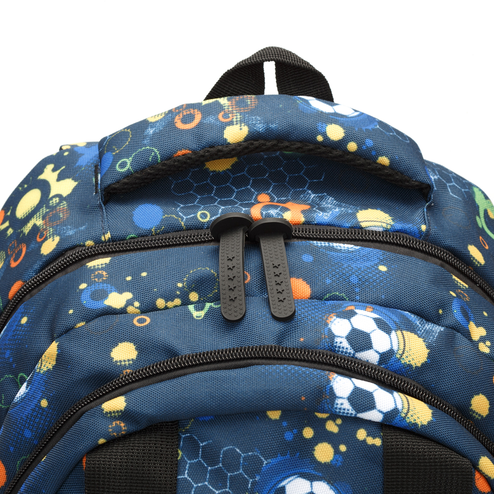 Рюкзак TORBER CLASS X, черно-синий с рисунком "Мячики", полиэстер, 45 x 32 x 16 см + Пенал в подарок