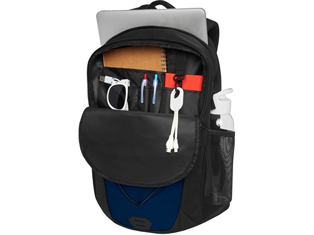 Комбинация походного и ежедневного рюкзака с цветной отделкой и эластичным шнурком со светоотражающими элементами на передней панели. Имеет два внешних сетчатых кармана для хранения бутылок с водой, переднее отделение с несколькими небольшими отделами, крючок для удобного хранения и чехол для планшета размером 12. Рюкзак оснащен укрепленной ручкой и удобной спинкой со смягчающими прокладками. Мягкий чехол внутри главного отделения подходит для ноутбука размером 15,6.