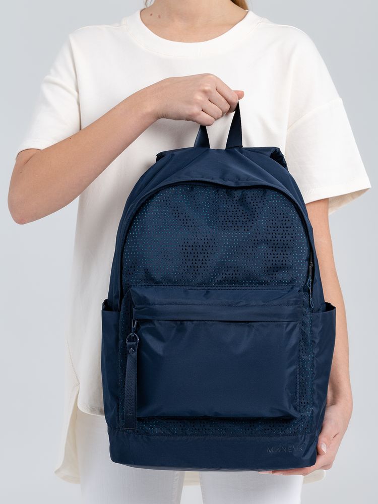Цвета сумок в коллекции Triangel позволяют создавать модные монохромные или контрастные сочетания с другими изделиями бренда Manevr. Рюкзаки изготовлены из шелковистого полиэстера, в отделке использована лазерная перфорация паттерна.