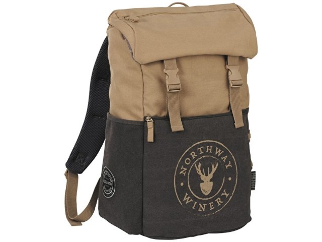Рюкзак Field & Co.® Venture для ноутбука 15. Рюкзак Venture создан для людей, которые жаждут приключений. Основное отделение с карманами для планшета и ноутбука. Внутренний карман из сетки. Вверху - застежка на шнурках с клапаном, застегивающимся спереди. Карман спереди внизу. Карман сбоку для бутылки и боковой карман на завязках. Уплотненные лямки. Холщовый хлопок 16 oz. Термотрансфер (1 цвет (цветные изделия)) на данный товар осуществляется бесплатно. Оплачивается только настройка оборудования в размере 10000 рублей на весь тираж.