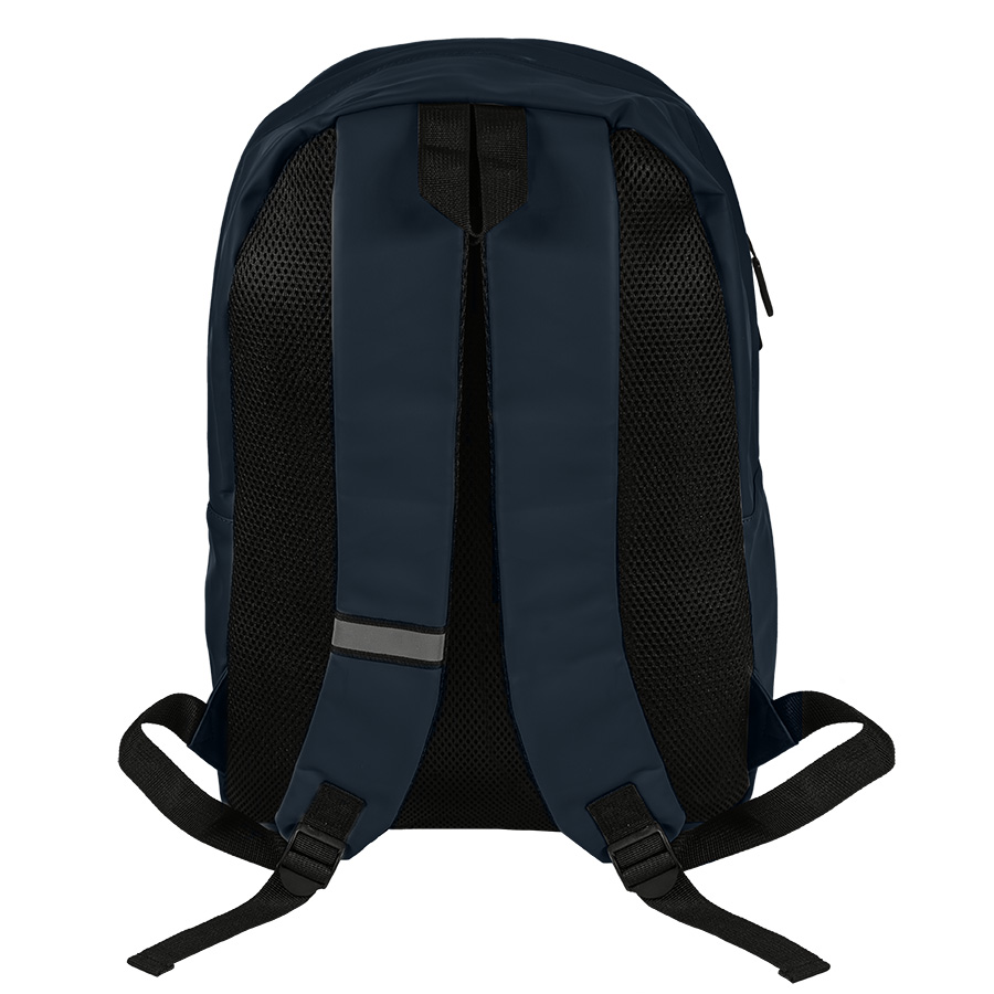 Современный рюкзак выполнен из 100% полиуретана. Одно внутреннее отделение с карманом для ноутбука. Карман на молнии спереди. Вентилируемая спинка. Светоотражающие элементы. Объём: 18 литров.