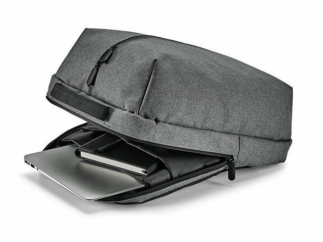 Рюкзак для ноутбука из 600D высокой плотности с 2 отделениями. Задняя часть с подкладкой, несколькими внутренними карманами и 2 мягкими отделениями для компьютера до 15'6'' и планшета до 10'5''. Переднее отделение с набивкой, идеально подходит для транспортировки одежды (или для отдыха). Задняя часть и шлейки с набивкой. В рюкзаке есть ремень для крепления к чемодану. 300 x 450 x 160 мм