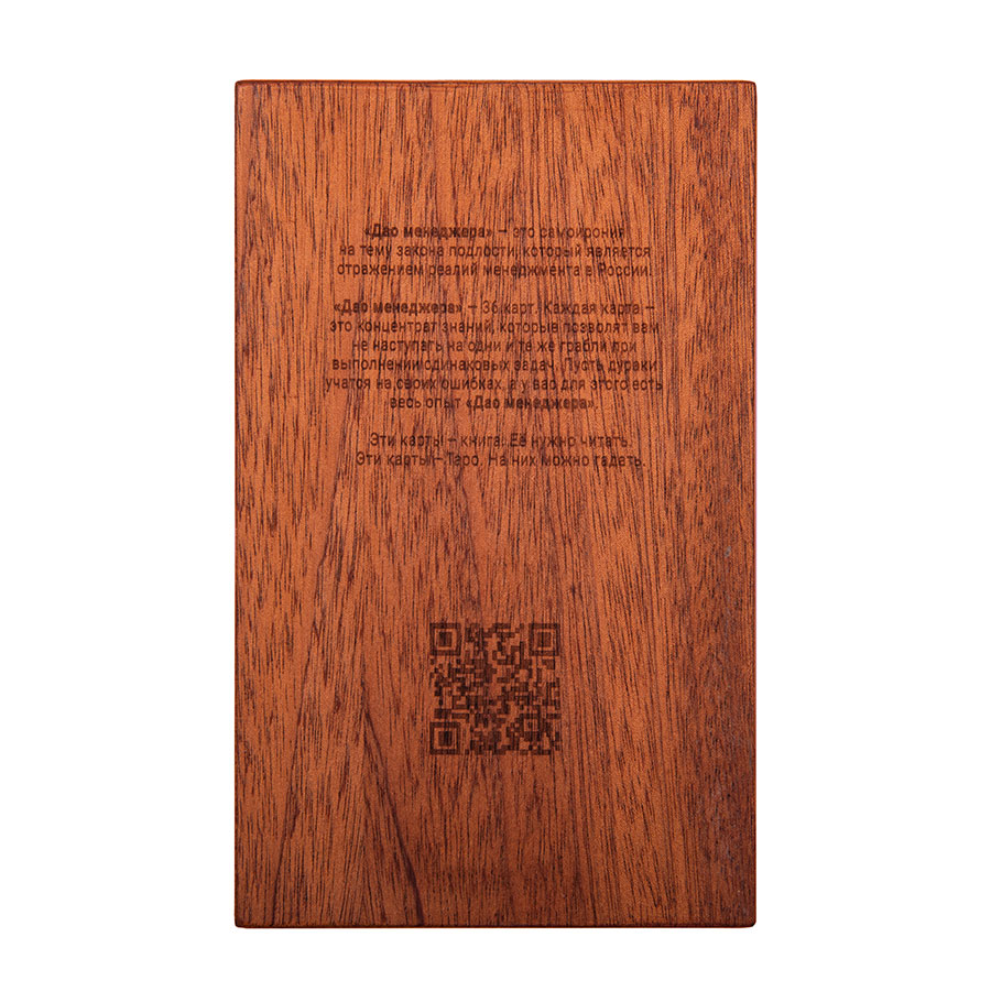 Сборник карт-афоризмов о менеджменте в России. «Дао менеджера» - уникальная книга для бизнеса— это набор иллюстрированных афоризмов о непростых отношениях между создателем и модератором. Иногда эти отношения парадоксальны, иногда курьезны, но всегда присутствуют в нашей жизни: как на работе, так и в быту. Весь концентрат мудрости в 36 картах. Менеджерское Таро, путеводитель в мире тайм-менеджмента, кормчая книга управленца — это «Дао менеджера». Полная расшифровка аффирмаций доступна на сайте. Переход через QR код. http: даоменеджера.рф Деревяный футляр для карт.