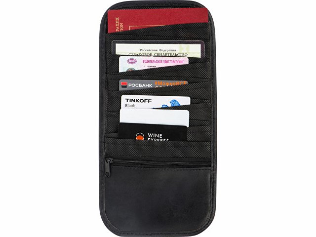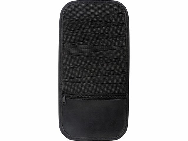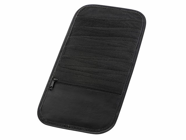Универсальный органайзер на козырек автомобиля. Крепится на эластичные крепления. Имеет 12 карманов и отделение на молнии для расположения банковских карт, документов и других мелочей. Органайзер легкий по весу, не мешает обзору водителя. Тиснение (Блинт) на данный товар осуществляется бесплатно. Оплачивается только настройка оборудования в размере 6200 рублей на весь тираж.