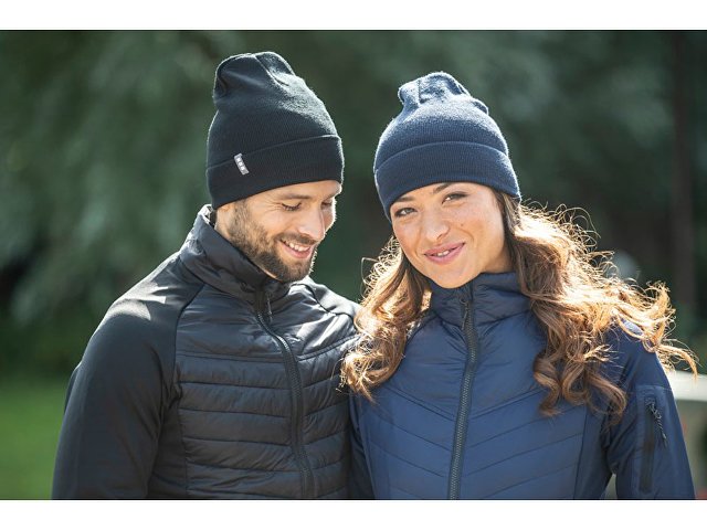 Экологически безопасный рекламный головной убор. Однослойная шапка с двойным отворотом. Фирменная этикетка в виде петли. Рибана 1x1, 60% Polylana®, 40% Акрил, 12 класс.