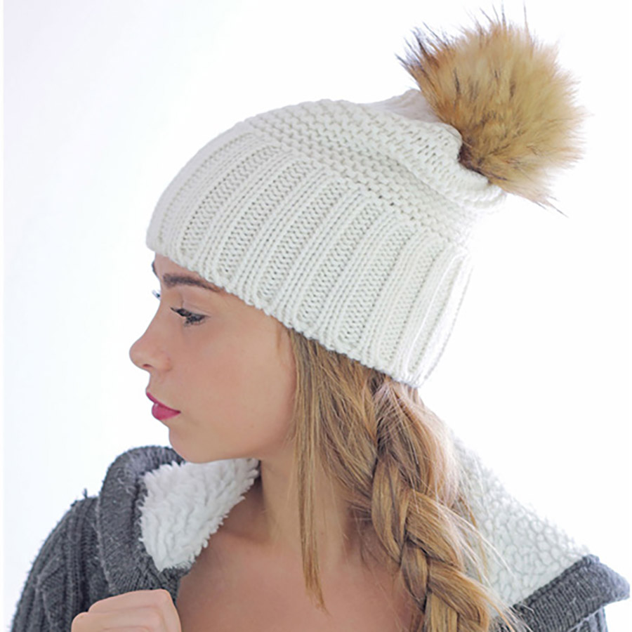 Цвет, близкий к Pantone Neutral Black C Элегантная шапка, сочетающая в себе два вида вязки, выполнена из высококачественной итальянской пряжи. Шерсть в составе поможет сохранить волосы чистыми и опрятными. Пушистый и приятный помпон из искусственного меха имитирует натуральный. При этом он гипоаллергенен и более практичен в уходе. По краю изделия проложена эластичная резинка для сохранения формы и комфортного прилегания.