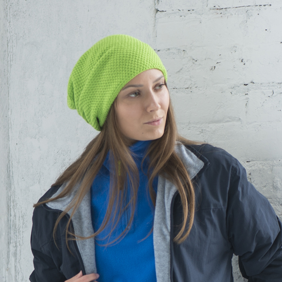 Цвет, близкий к Pantone 647 C Удлиненная легкая двухслойная шапка из мягкой пряжи средней вязки с рельефным рисунком, напоминающим медовые соты. Snobby идеально впишется в ваш повседневный гардероб, а наличие ярких неоновых цветов поможет поднять настроение и выделиться из толпы.