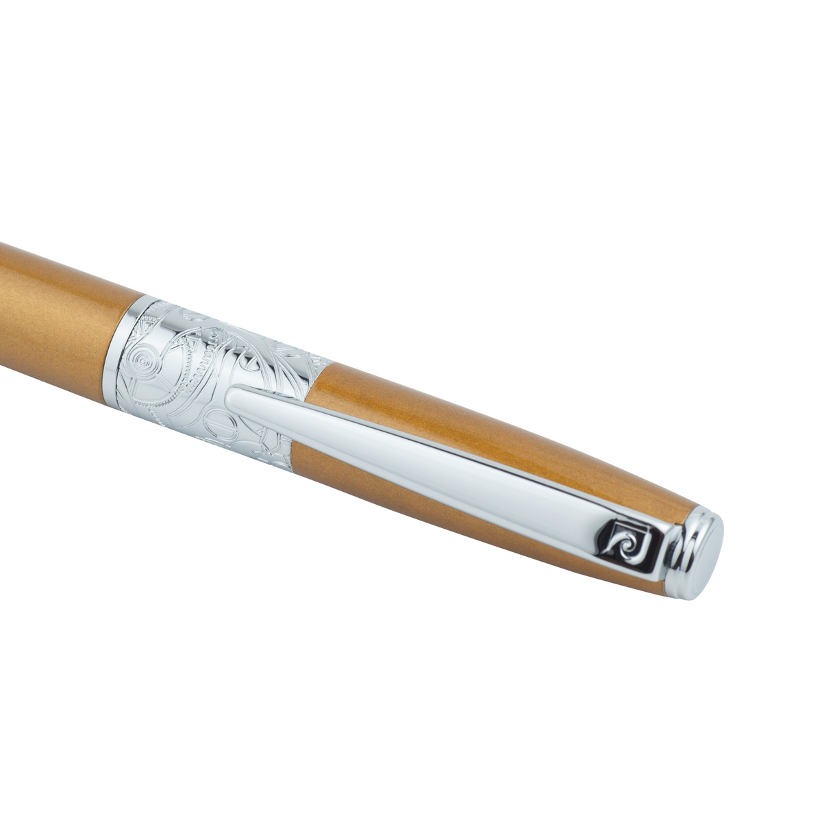 Серия шариковых ручек Pierre Cardin BARON с широким хромированным кольцом, украшенным алмазной гравировкой, имитирующей внутренние части часового механизма. Корпуса ручек покрыты несколькими слоями лака с эффектом жемчужного сияния. Широкая цветовая гамма предлагает выбор от классических темных, матовых цветов до ярких оттенков с эффектом "металлик". Данное разнообразие позволяет создать именно свою ручку - достаточно просто поменять местами верхнюю и нижнюю часть корпуса с разными цветами и в руках оказывается уникальная и неповторимая комбинация. Идеальный пишущий инструмент для творчества и креативных идей.