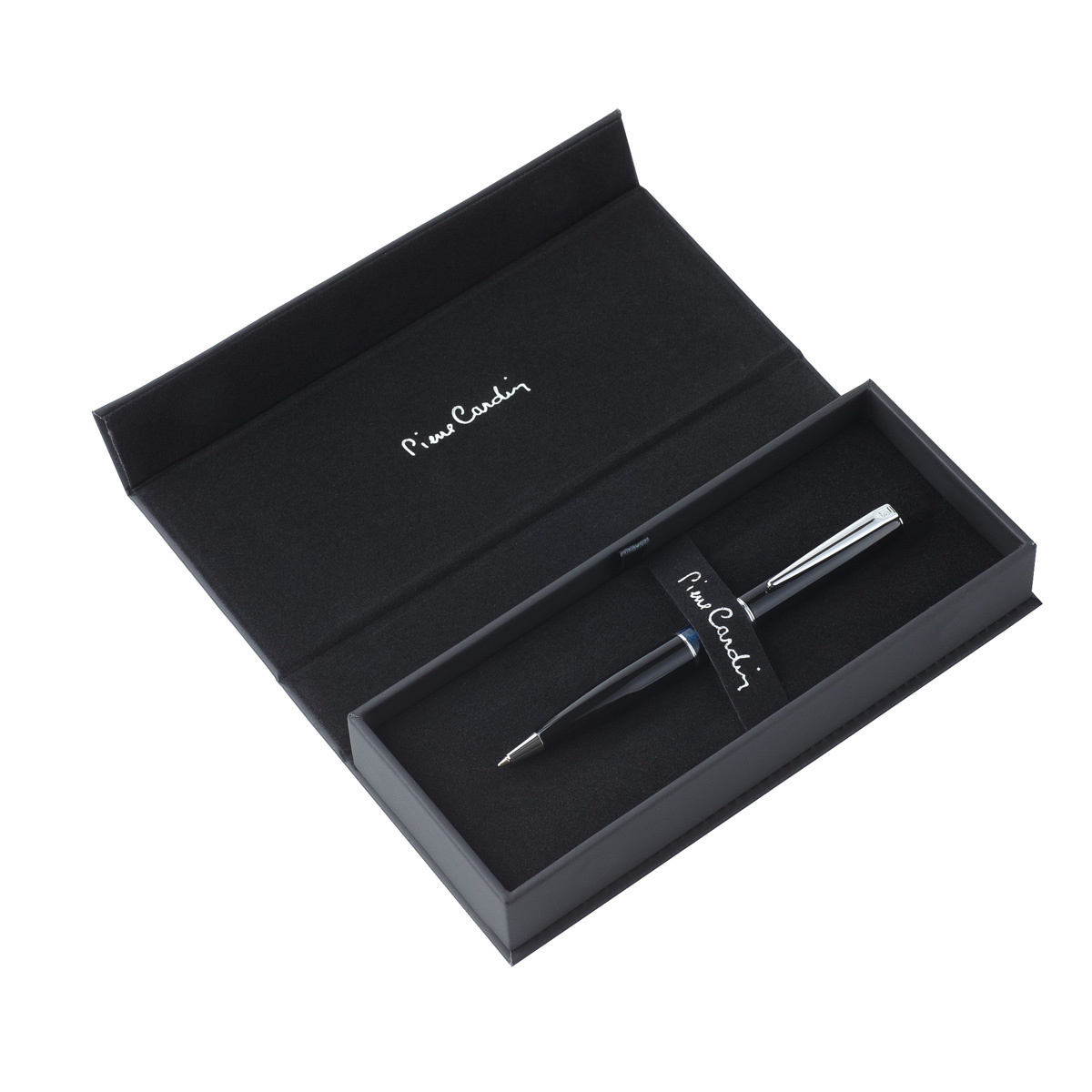 • Металлический стержень с логотипом Pierre Cardin на корпусе, с чернилами синего цвета.