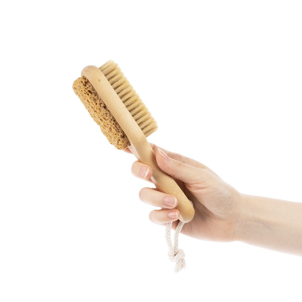 Щетки изготовлены из экологичных материалов. Натуральная щетина средней жесткости защитит кожу от мелких повреждений, подарив только самые приятные ощущения. Пемза из искусственного камня не крошится и долго сохраняет свои свойства.