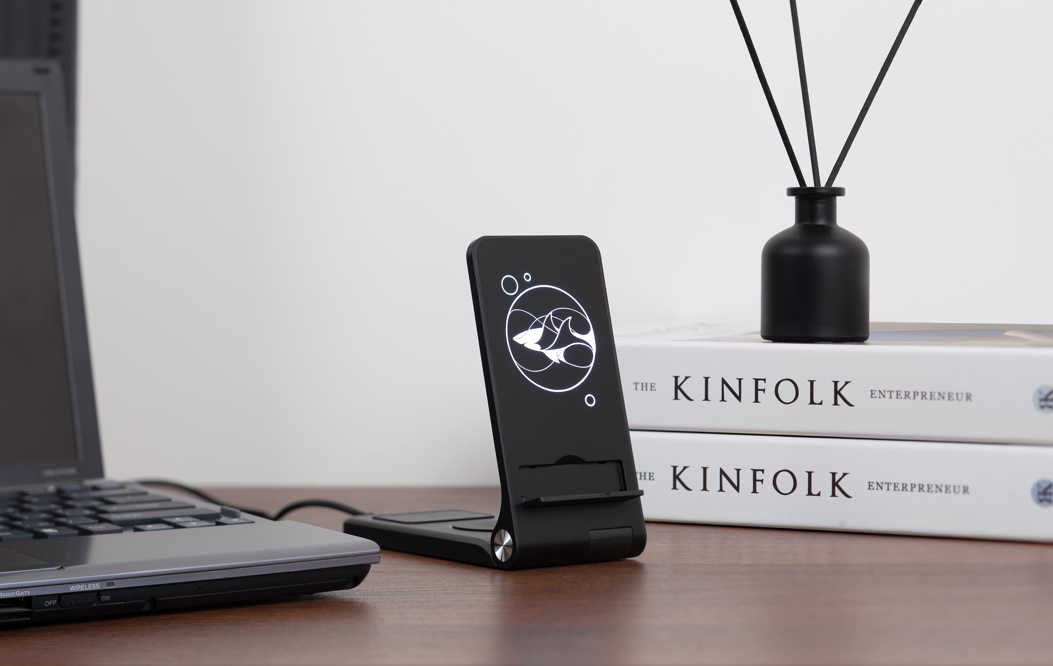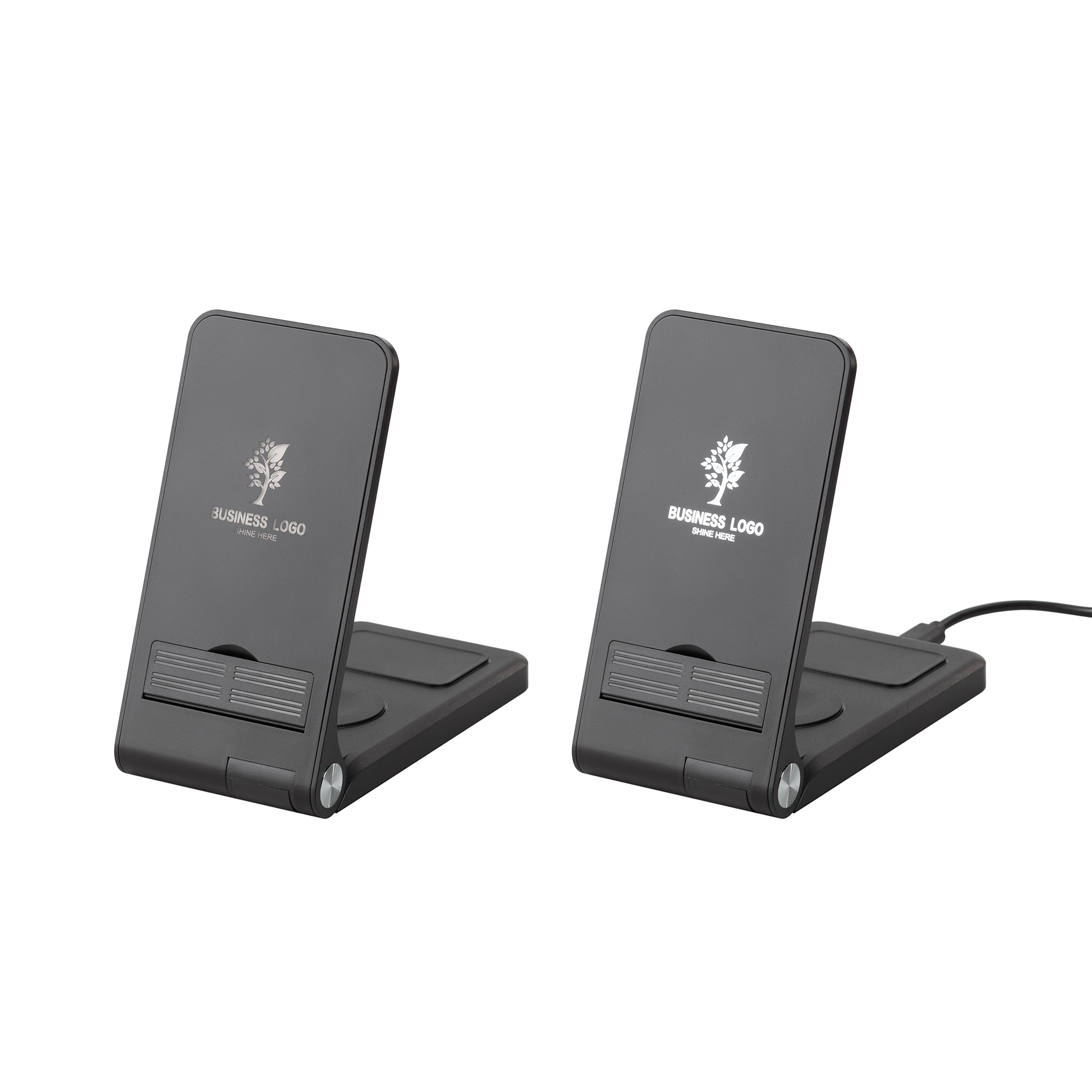 Складная беспроводная (15W) зарядная станция "Clap" с подсветкой логотипа и подставкой для смартфона