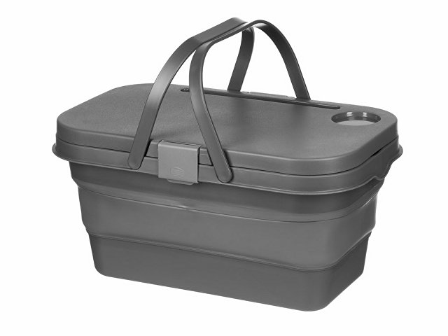 Крышка этой корзинки для пикника превращается в удобный столик буквально по щелчку пальцев: для этого нужно просто снять ее и разложить металлические ножки. На этом магия корзинки не заканчивается — силиконовый корпус складывается, что очень удобно, когда пикник закончен, и все содержимое съедено.