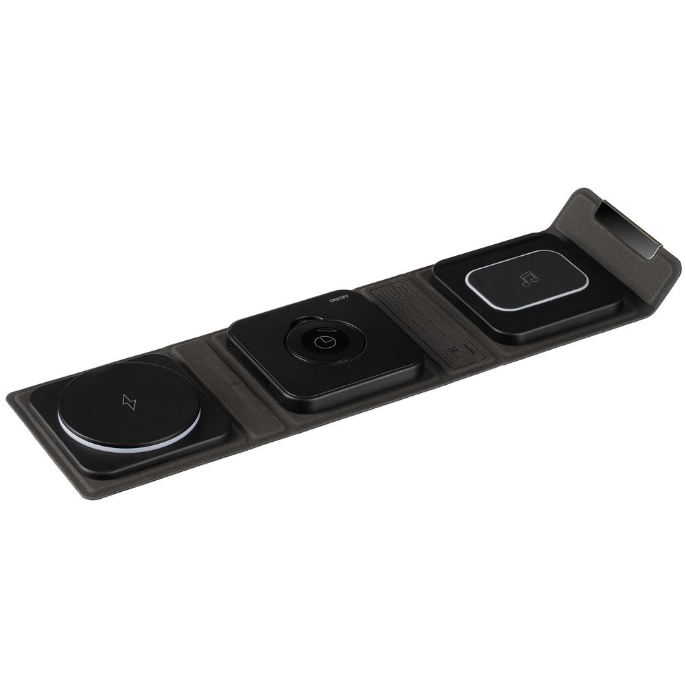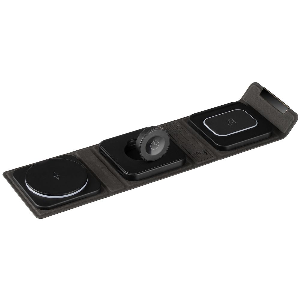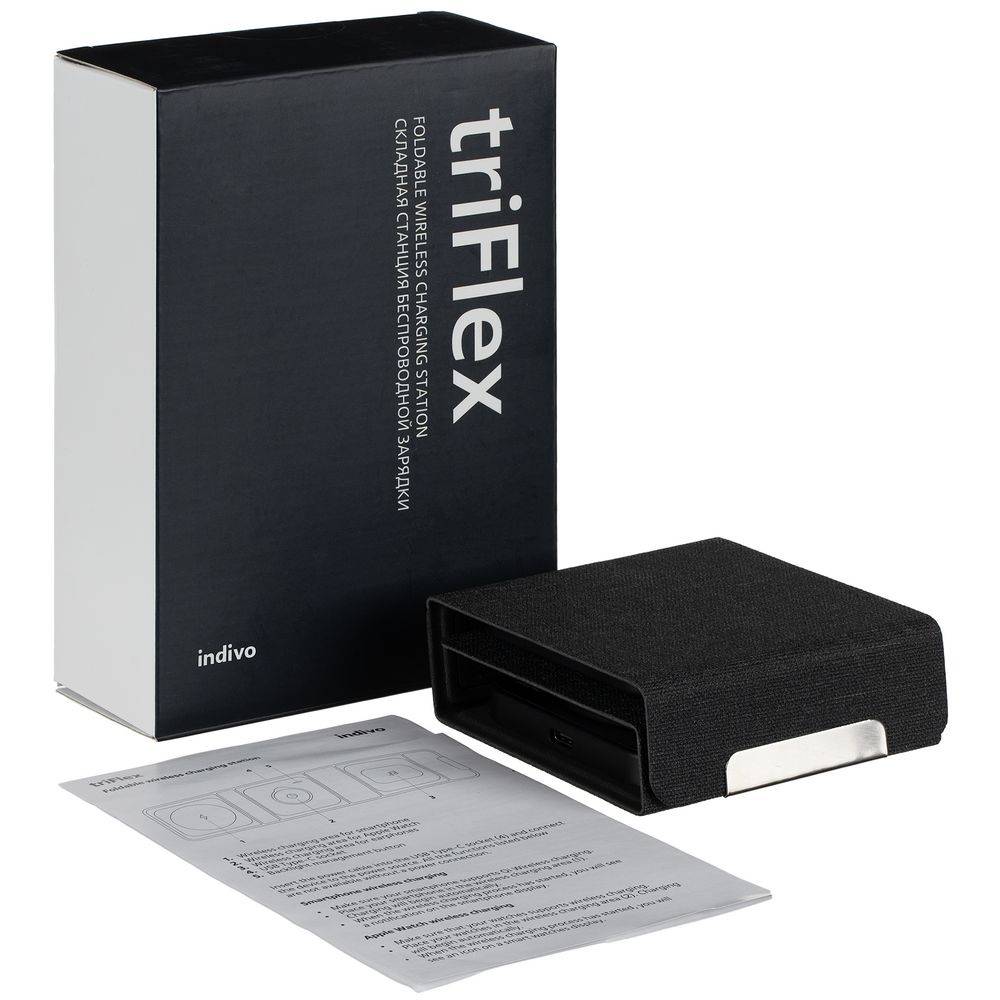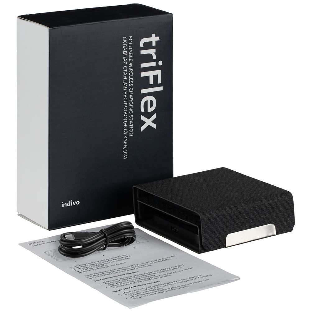 triFlex — компактное устройство беспроводной зарядки, которое удобно использовать в офисе или в дороге, так как станция легко сворачивается в аккуратный бокс.