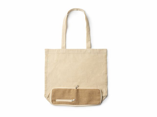 Складная сумка из 100% хлопка (110 г/м²) с дном из джута. Усиленные ручки 60 см.