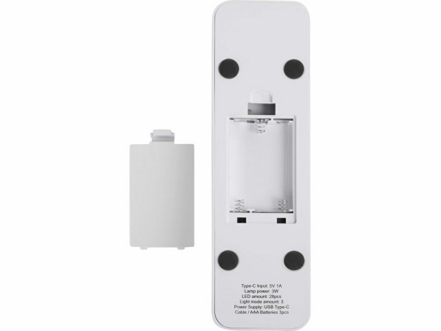 Ультра-портативная лампа на основе LED-элементов освещения с питанием от двух видов источников - USB или батареек. Спрятанные в стойки ножки дополнительно позволяют использовать лампу в качестве подставки для телефона. Лампа оснащена сенсорным включателем - с помощью легкого нажатия можно выбирать один из трех уровней яркости. Легко складывается, принимая компактный размер. Большая зона для декорирования. Питание либо от USB источника, либо от 3-х батареек ААА. Кабель USB Type-C в комплекте. Тампопечать (1 цвет (белые изделия)) на данный товар осуществляется бесплатно. Оплачивается только настройка оборудования в размере 4500 рублей на весь тираж.