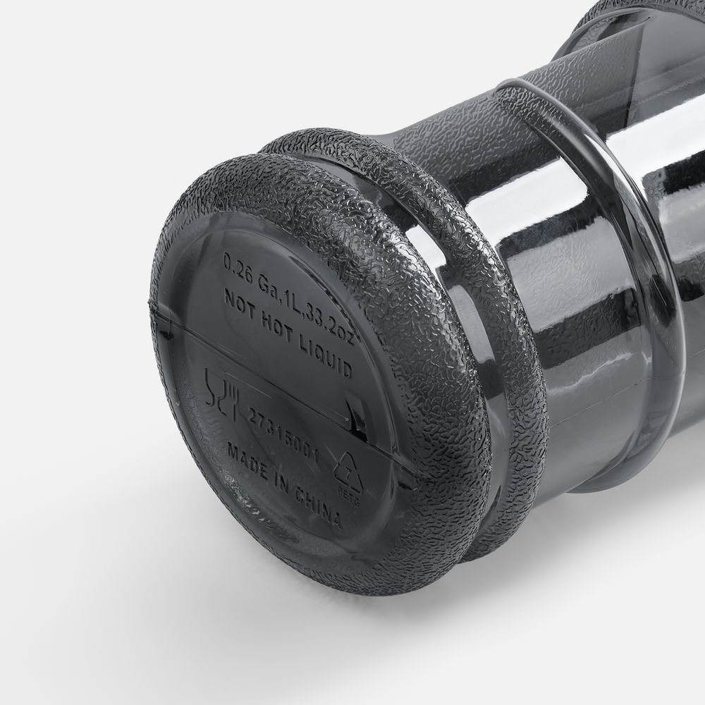 Большая ручка помогает удобно удерживать бутылку или быстро подхватывать ее во время тренировки. Крышка с уплотнительным кольцом, препятствующим протеканию жидкости, скреплена с корпусом ремешком — так она не потеряется в процессе использования. Полупрозрачный цветной корпус выполнен из пищевого пластика, гигиенически и экологически безопасного.
