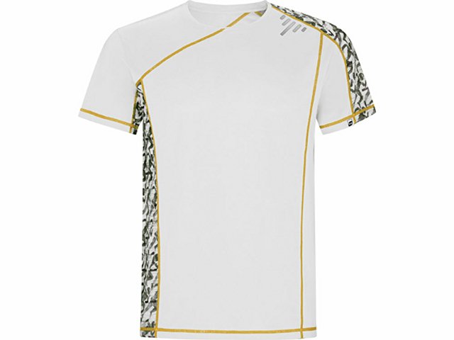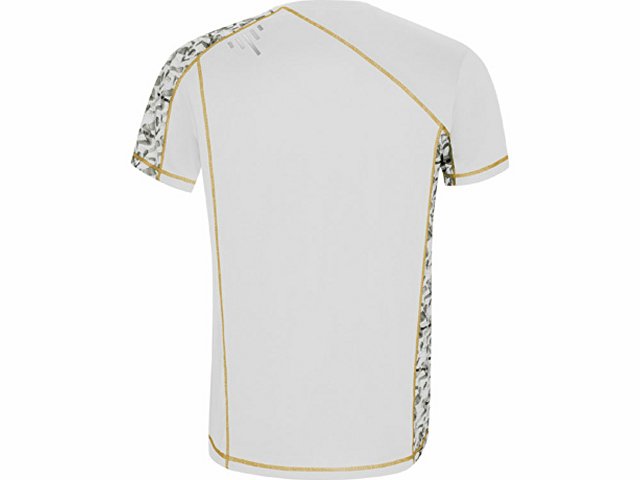Спортивная футболка с коротким рукавом и принтованными вставками. Контрастные отстрочки плоским швом, светоотражающие элементы на полочке и спинке. Эко лейбл на рукаве.