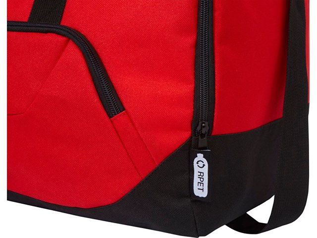 Прочная спортивная сумка, изготовленная на 100% из переработанного пластика, предназначенного для повторного использования, что способствует снижению количества пластиковых отходов. С большим основным отделением и передним карманом на молнии, мягким плечевым ремнем и мягкими ручками. Для изготовления этой сумки было переработано около 27 бутылок. 600D Полиэстер. Термотрансфер (1 цвет (цветные изделия)) на данный товар осуществляется бесплатно. Оплачивается только настройка оборудования в размере 10000 рублей на весь тираж.