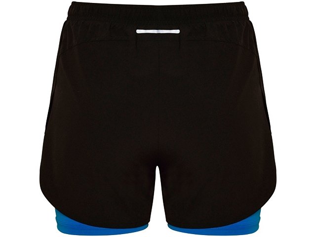 Женские спортивные шорты с контрастными внутренними короткими легинсами. Эластичный пояс с внутренним шнурком для регулировки. Светоотражающие детали. Специальная эластичная ткань для бега.