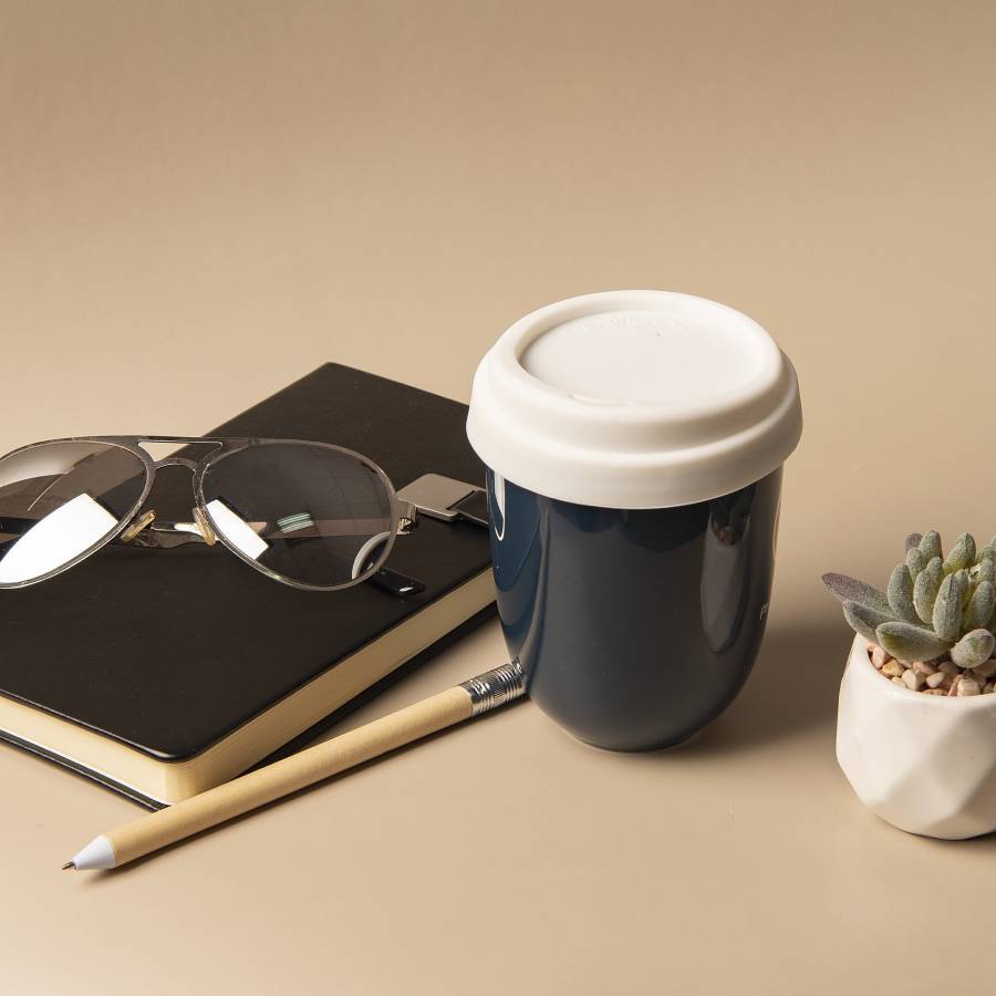 Керамический стакан с двойными стенками, имеет стильную обтекаемую формуСиликоновая крышка с удобным для питья отверстием не даст вашему напитку быстро остыть