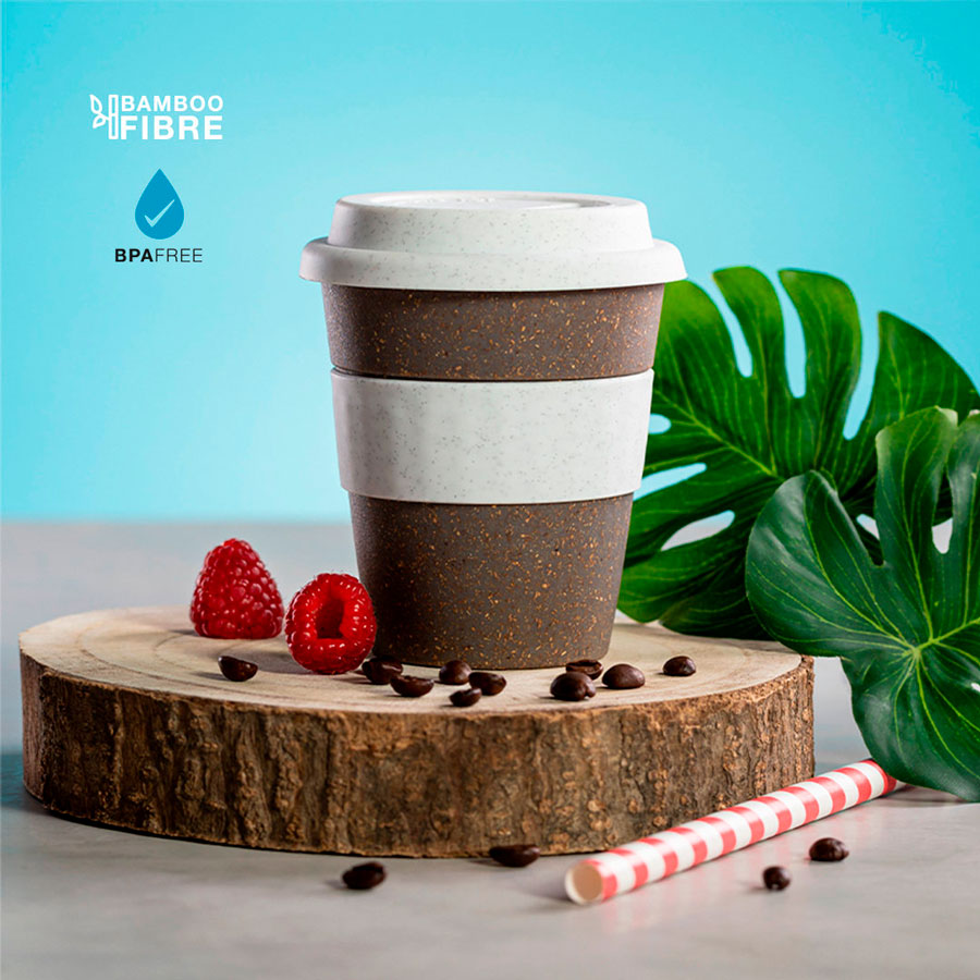Стакан FLIKER с крышкой, полипропилен с бамбуковым волокном,силикон