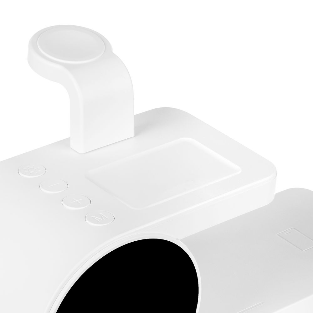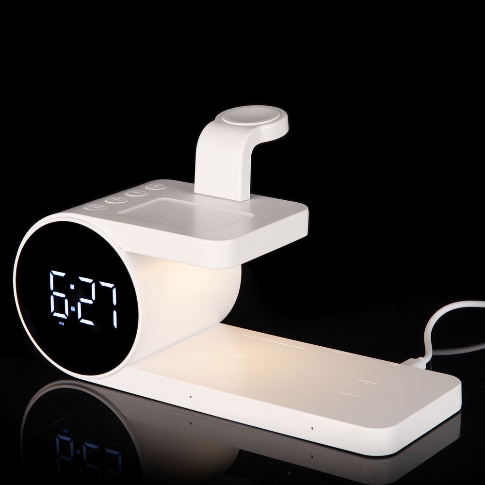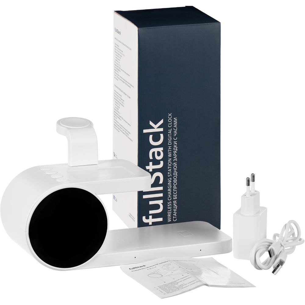fullStack — многофункциональное устройство, которое сочетает в себе функции станции беспроводной зарядки разнообразных устройств, электронных часов с будильником и ночной лампы.