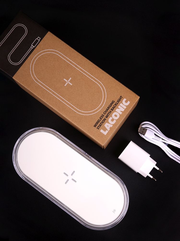 Laconic — многофункциональное устройство, которое является одновременно станцией для беспроводной зарядки, стильным интерьерным светильником, а также ночной лампой.