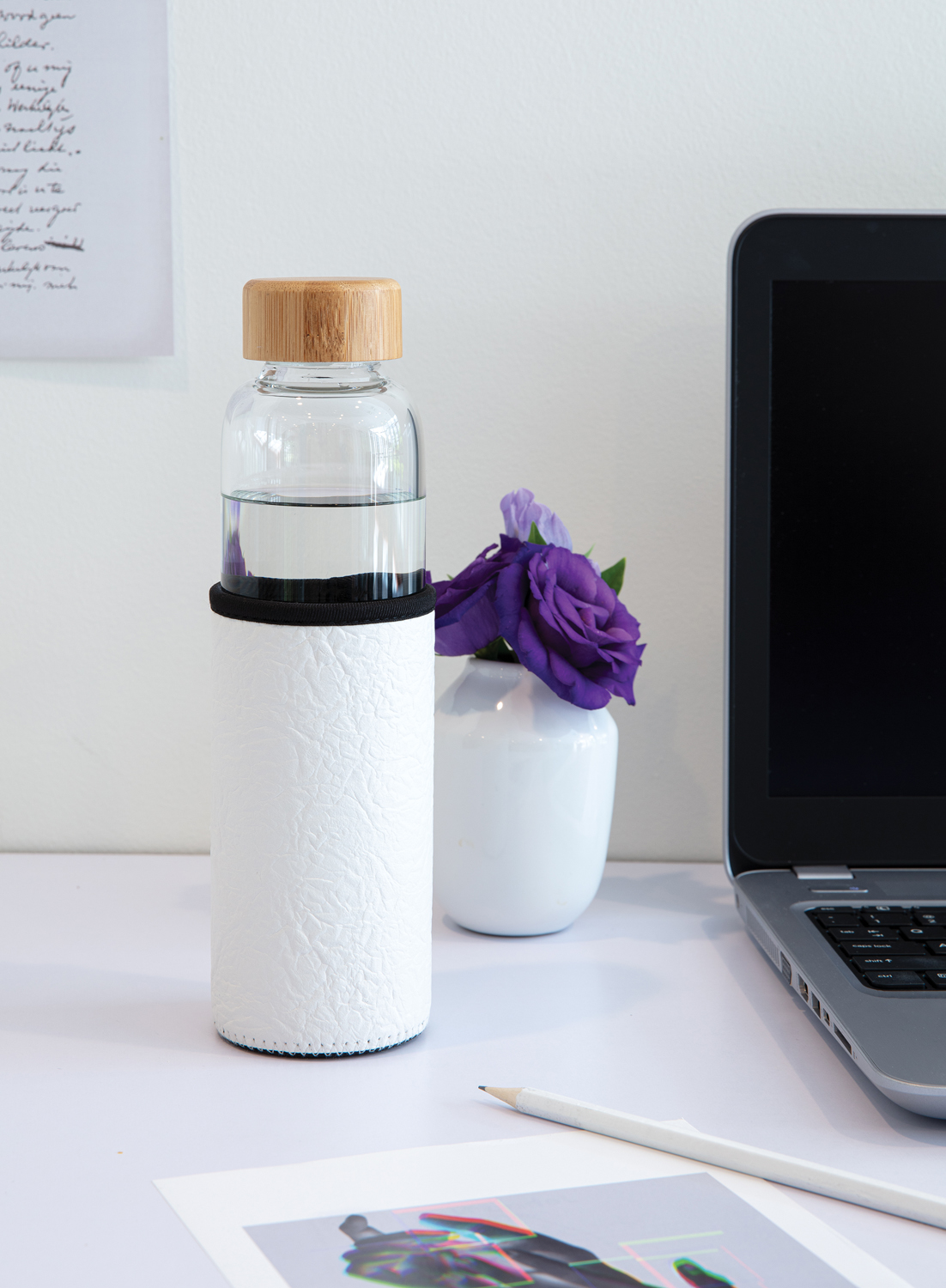 Стеклянная бутылка с текстурированным чехлом из PU идеально подойдет тем, кто не хочет пить из пластика. Стеклянная бутылка закрывается герметичной крышкой из бамбука. Широкое горлышко позволяет комфортно пользоваться бутылкой, а нескользящий чехол из PU защищает стекло от внешнего воздействия и добавляет стильный штрих. Объем 550 мл.