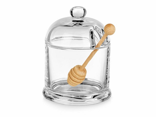 Стеклянная емкость для меда с ложкой точно завоюет место в сердце любителя этого полезного лакомства. Кстати, внутрь можно положить не только мед, но и другие вкусные вещи — варенье, повидло, джемы, которые тоже удобно накладывать ложкой-веретеном.