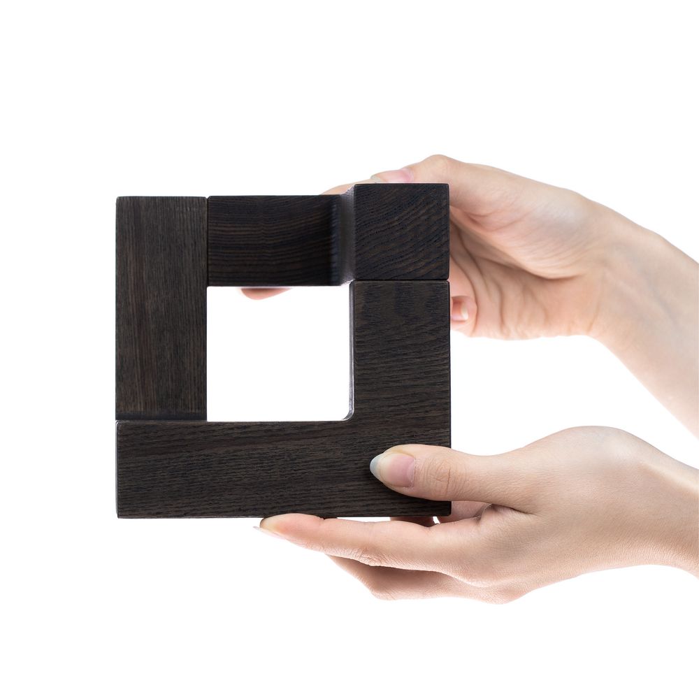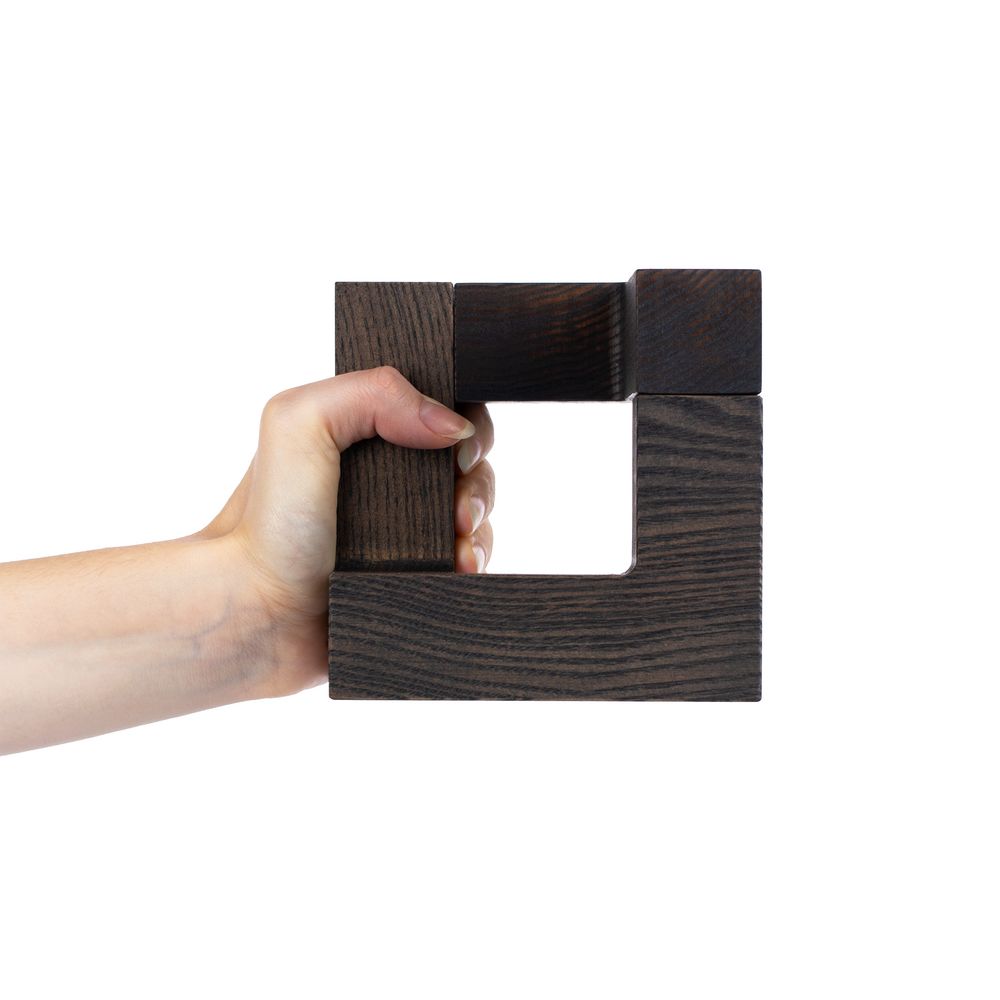 Продуманная конструкция из трех деревянных деталей на магнитах позволяет собрать необычный трехмерный куб, который, кажется, меняет свою форму в зависимости от угла зрения. Поэтому такой стелой особенно легко отметить уникальные качества и достижения награждаемого — профессиональные успехи, личные победы, огромный вклад в развитие команды и общества или нестандартный подход к решению задач.