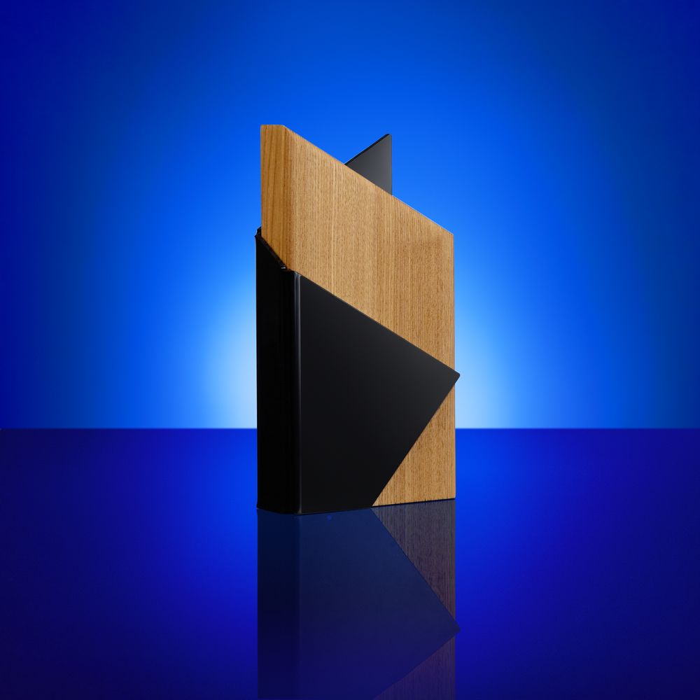 Majestas — уникальная стела, обладающая необычным дизайном. Выполненная из цельного бруса ясеня и гнутого цветного акрила стела станет украшением любого интерьера.