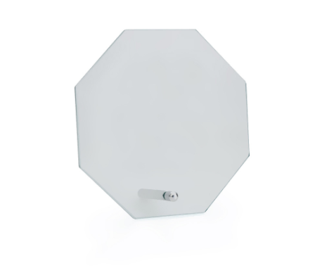 Награда в форме восьмиугольника из толстого стекла. Поставляется в подарочном футляре.