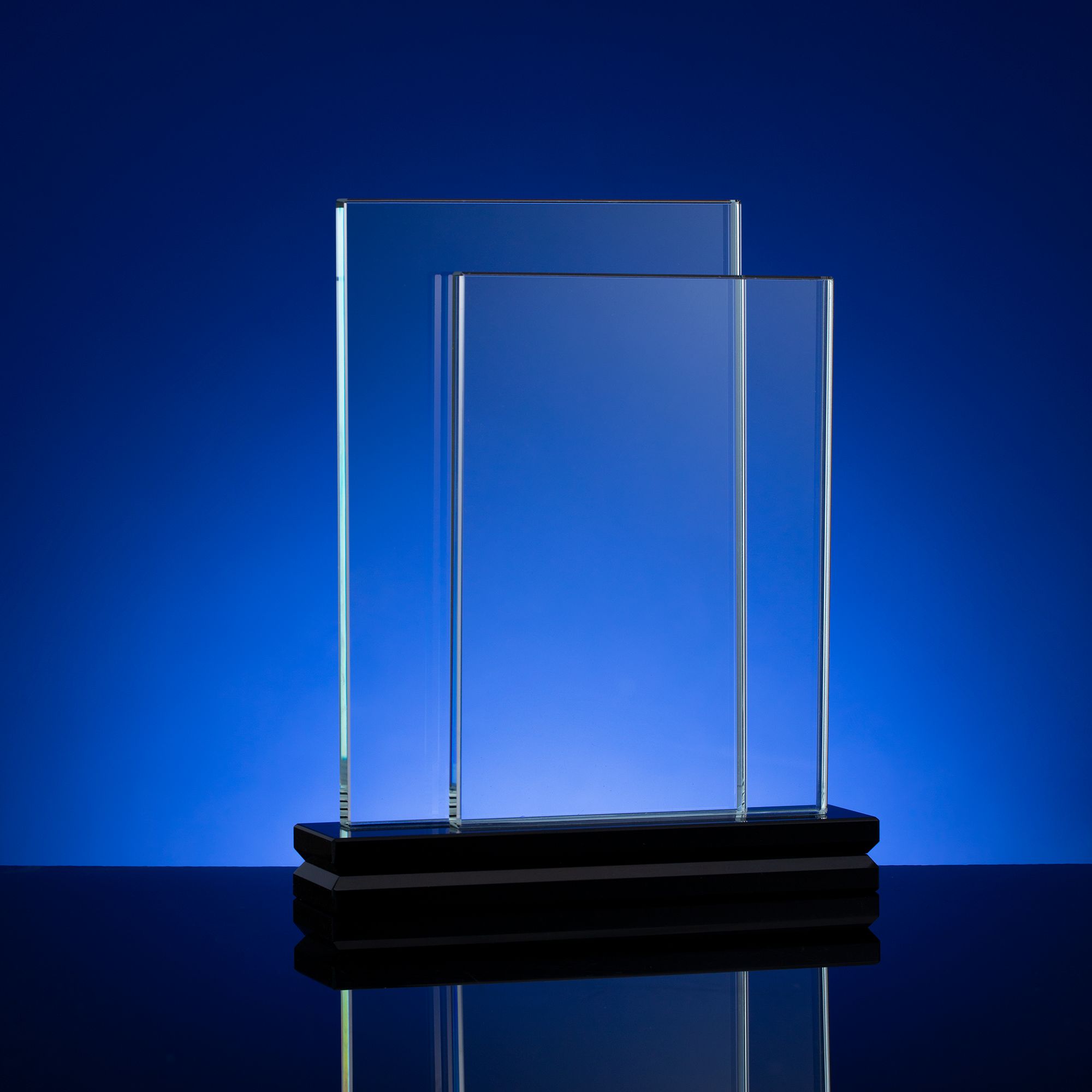 Стела Twinstand воплощает собой чистый минимализм, помноженный надвое, — для усиления эффекта и создания визуального объема и основательности. Легкая прозрачная вставка из двух листов боросиликатного стекла — идеальный баланс устойчивости и легкости, который позволит отметить вдвое больше заслуг или создать оригинальный запоминающийся дизайн с помощью креативного нанесения.