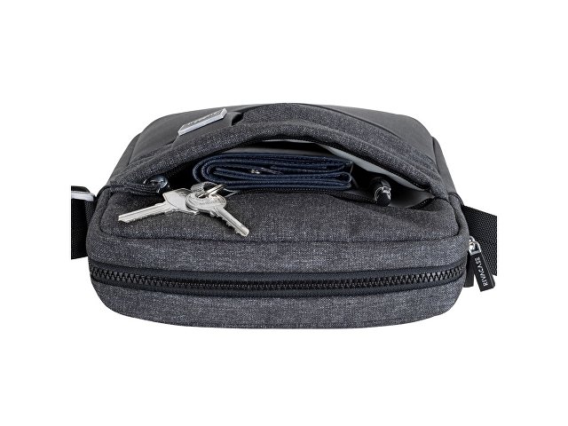 • Передний карман на молнии оборудован панелью-органайзером для хранения визитных карт, авторучек и карабином для ключей.