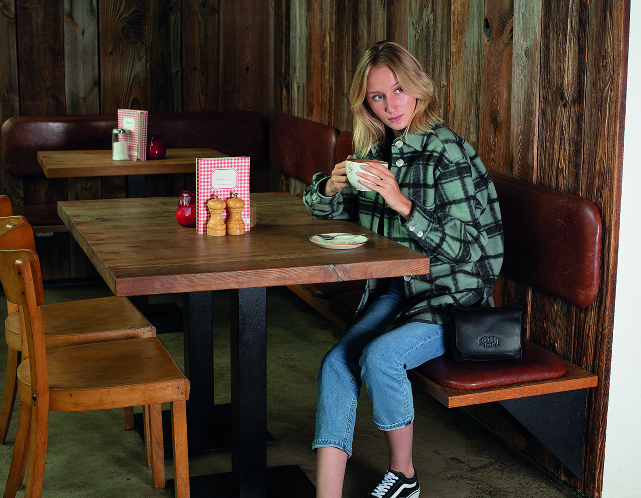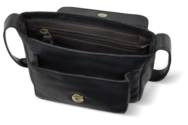 Сумка через плечо KLONDIKE RUSH «Monika», натуральная кожа в черном цвете, 20 х 15,5 х 8 см