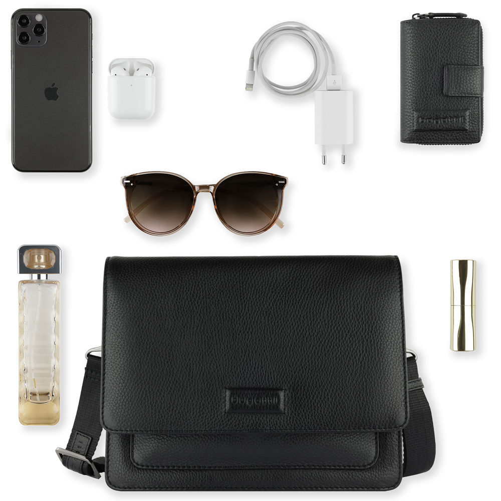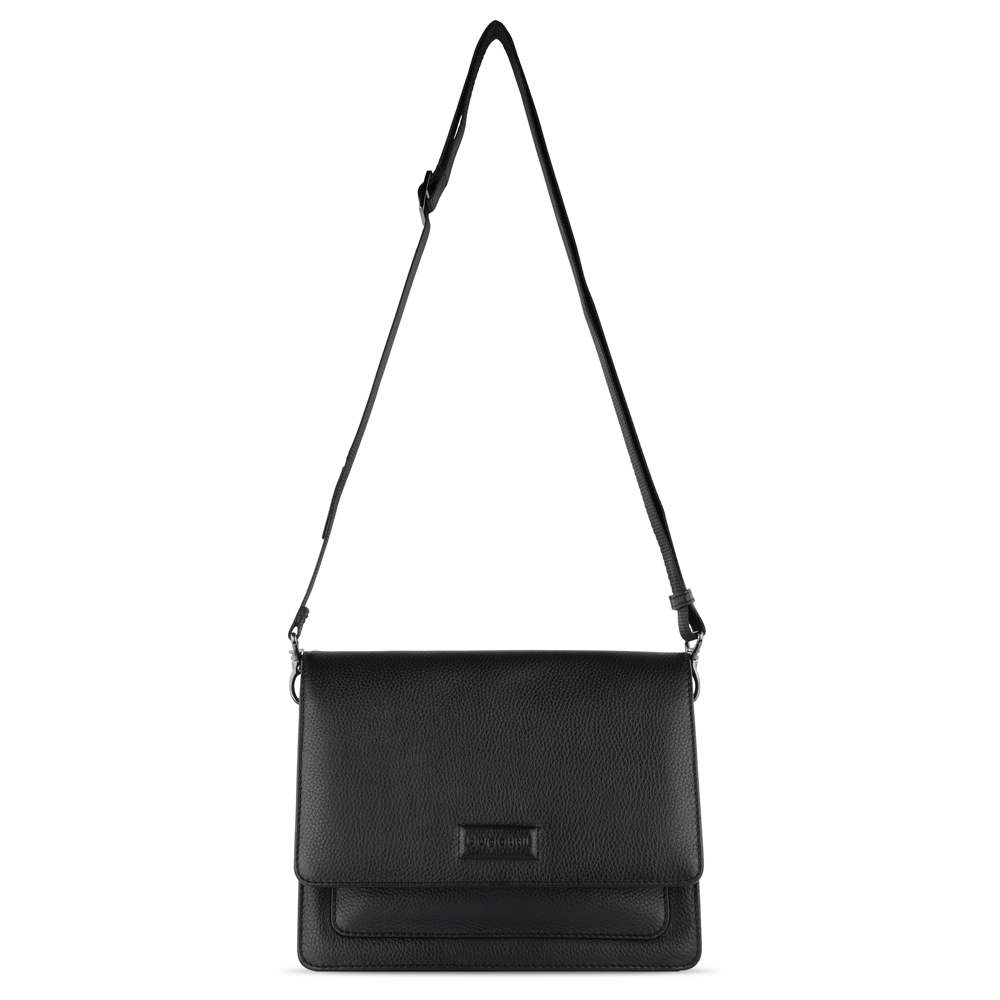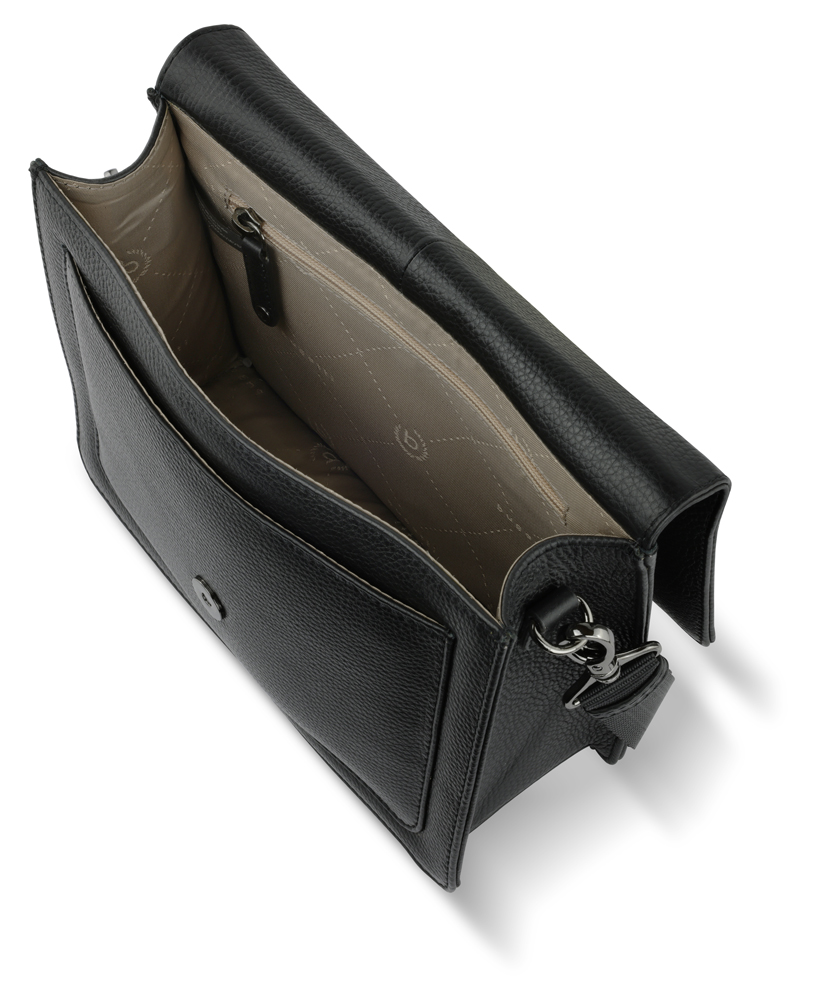 Сумка через плечо женская BUGATTI Elsa, чёрная, воловья кожа/полиэстер, 25х8,5х20 см