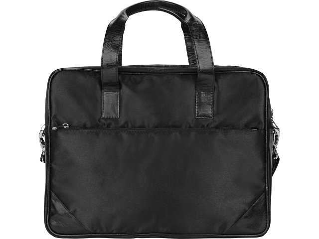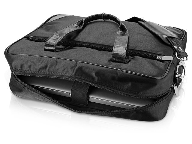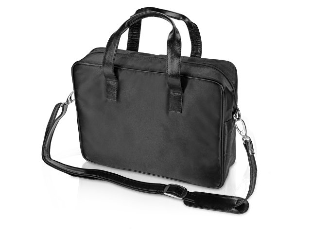 Сумка для ноутбука с ручками и вставками из натуральной кожи имеет одно отделение и внешний карман на молнии, в который удобно класть документы. К сумке можно пристегнуть длинный ремень и носить ее на плече. Термотрансфер (1 цвет (цветные изделия)) на данный товар осуществляется бесплатно. Оплачивается только настройка оборудования в размере 10000 рублей на весь тираж.