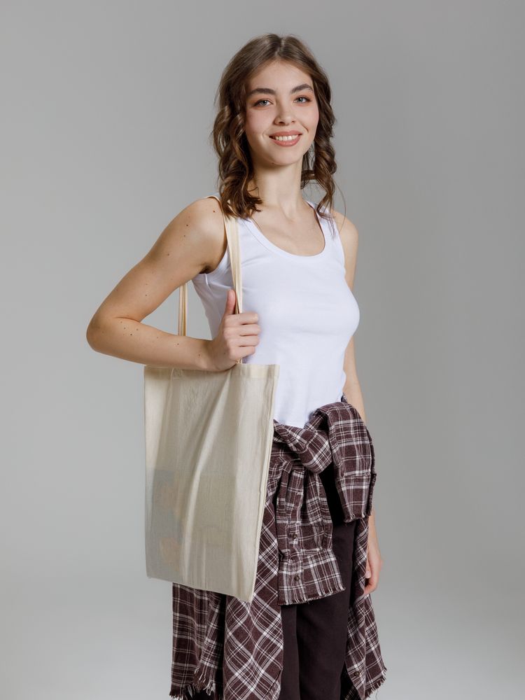 Классический шопер из органического хлопка. Неокрашенное полотно делает сумку настоящим универсальным «холстом» для логотипов и других маркетинговых сообщений.