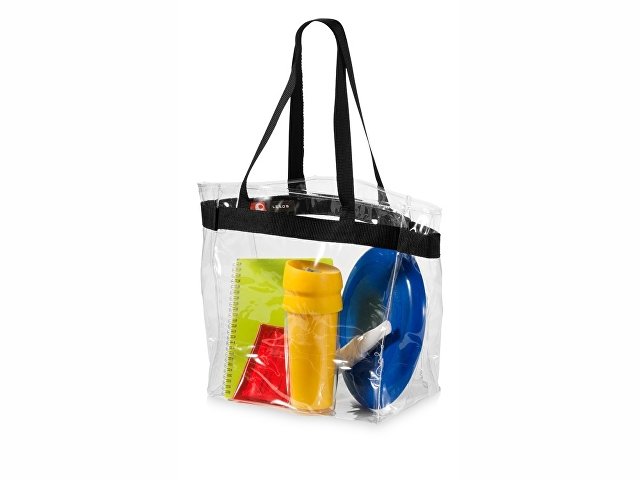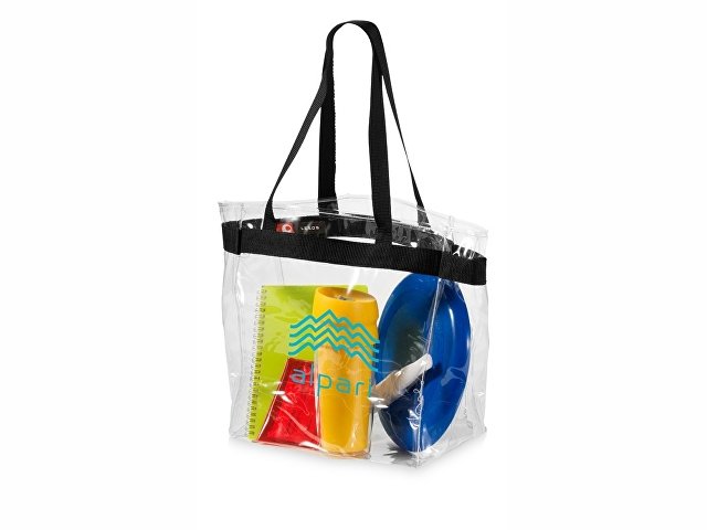 Эта прозрачная сумка отлично подходит для фанатов, которые предпочитают безопасно паковать свои принадлежности для стадиона и мероприятий. Она также подходит для работы и школы. Открытое основное отделение со спортивной сетчатой отделкой и двумя ручками. Высота ручек 27 см. Принадлежности не включены. ПВХ. Тампопечать (1 цвет (цветные изделия)) на данный товар осуществляется бесплатно. Оплачивается только настройка оборудования в размере 4500 рублей на весь тираж.