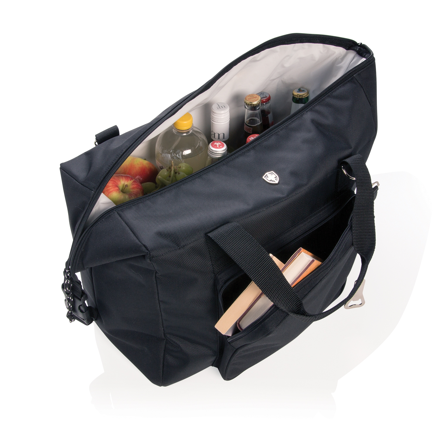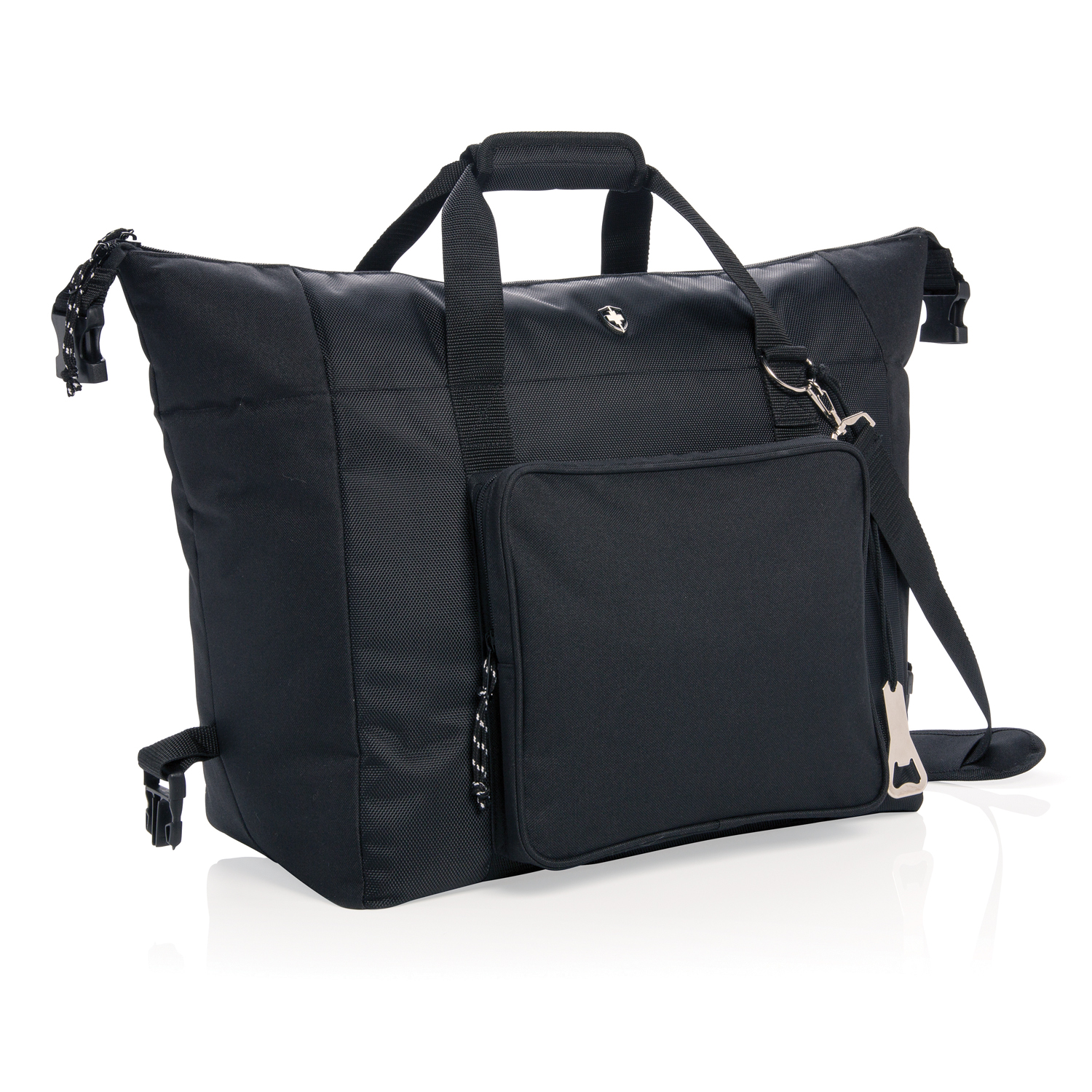 Стильная сумка-холодильник от бренда Swiss Peak изготовлена из двух видов полиэстера (600 D и 1800 D). Просторное основное отделение и передний карман на молнии. Легко трансформируется в обычную вещевую сумку, если убрать боковые накладки. Объем - 40 л (до 10 полуторалитровых бутылок или 52 алюминиевые банки). Двойные ручки повышенной прочности. Съемный плечевой ремень. Поставляется с открывалкой для стеклянных бутылок. Изоляционный слой выполнен из винил-полиэтилена.