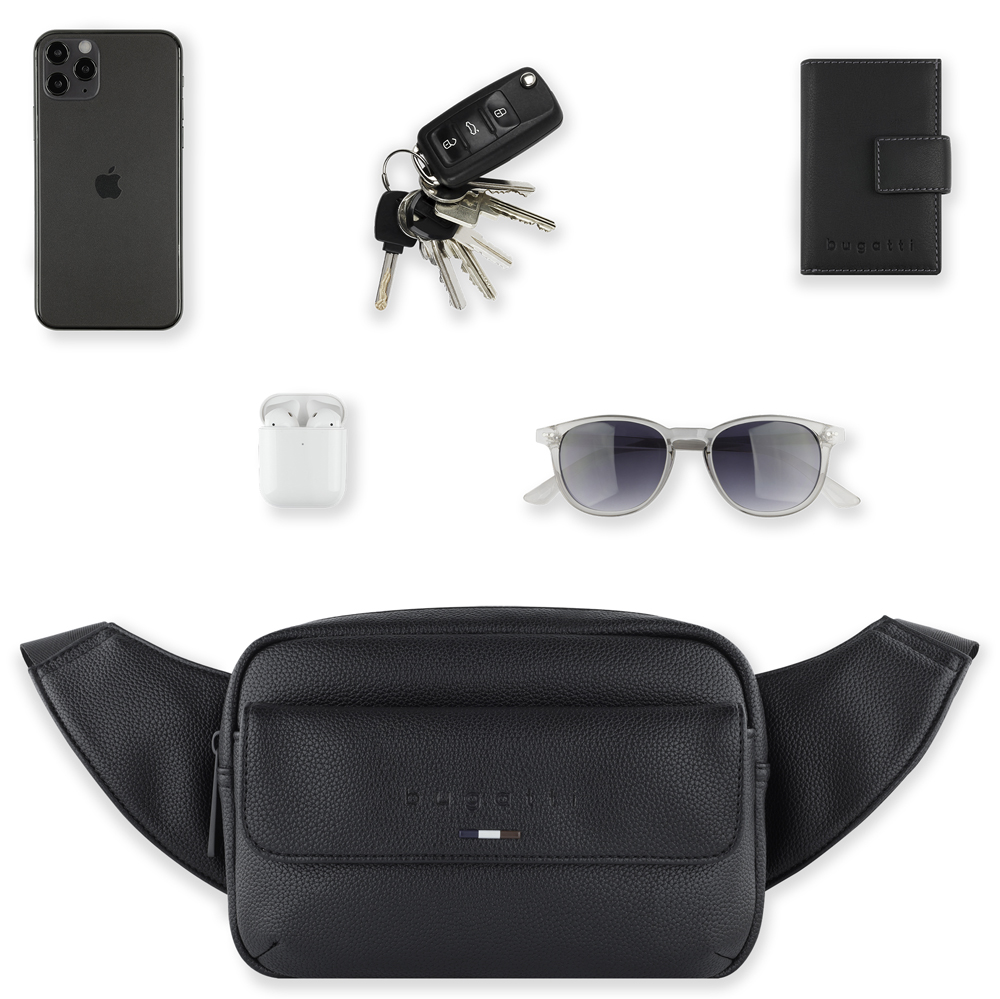 Сумка на пояс мужская BUGATTI Rico, черный, полиуретан, 22 x 7 x 15 см